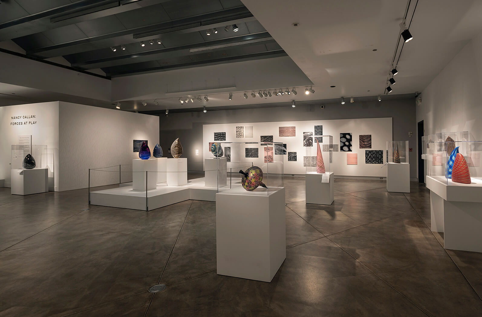 Nancy Callan: Forces At Play was curated by Katie Buckingham and presented at Museum of Glass in Tacoma, Washington during 2024-2025. The exhibition surveyed twenty-plus years of Callan's career as an artist. Organized thematically, the show included current and archival examples of Callan's sculptural work, as well as two major wall panel compositions created in the Museum Hotshop for the exhibition.